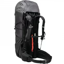 On attend surtout deux choses d’un bon sac à dos femme de trekking : qu’il soit suffisamment confortable et qu’il soit suffisamment bien équipé pour pouvoir ranger toutes les affaires que l’on souhaite embarquer. Le sac à dos Vaude Asymmetric 38+8 prend en haute considération ces deux grandes attentes. Le confort est obtenu via un dos extrêmement abouti (comme vu précédemment). Et l’optimisation des rangements est poussée au maximum avec un vrai volume utile de 46 litres et 9 poches très complémentaires : la poche principale (largement accessible depuis le haut, depuis le bas ou par une ouverture complète en façade), la sous-poche (à l’intérieur de la poche principale avec possibilité d’installer une poche à eau), la grande poche du rabat comprenant elle-même un sous-compartiment (pour le kit de secours et les accessoires), les deux poches latérales (pour la gourde et la nourriture du jour), la poche sur la ceinture lombaire (pour la monnaie et le téléphone), la poche en façade (pour la polaire ou autres vêtements) et la grande poche située dans la partie basse du sac (pour le sac de couchage). Si vous emportez une tente et un matelas, on a également suffisamment de porte-matériels répartis autour du sac pour accrocher tout cela. Idem pour les bâtons de marche, le piolet et un casque par exemple.